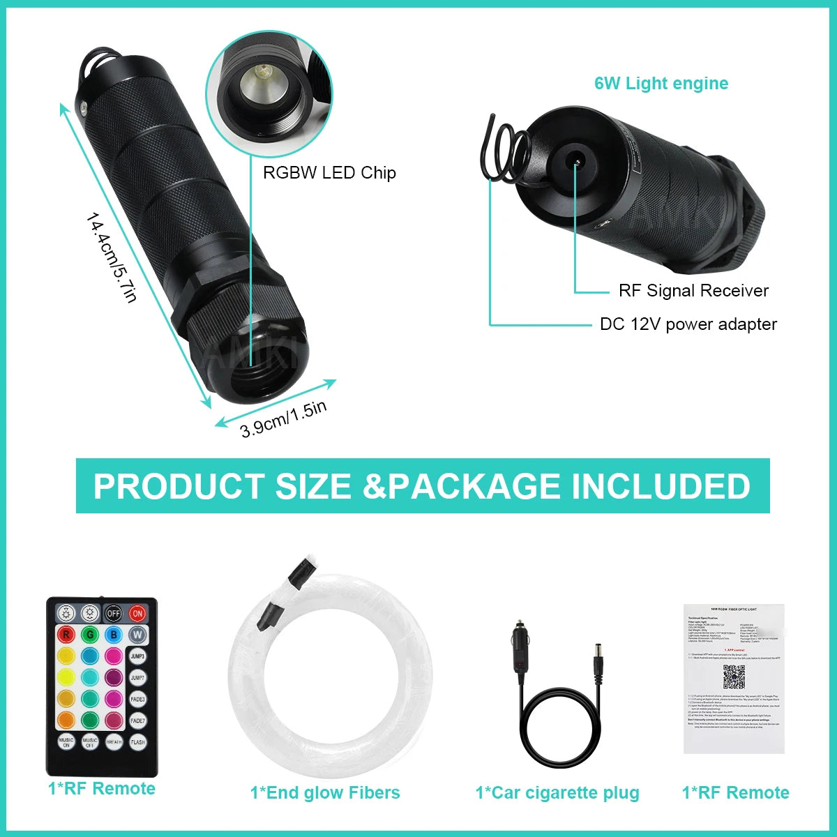 6W RGBW Starry Sky Car Star Ceiling Fiber Optic Light Auto Accessories Decoration Car Interior Starry Sky Ceiling Ambient Light