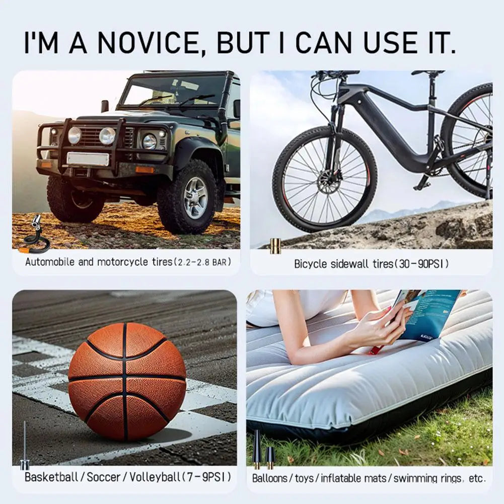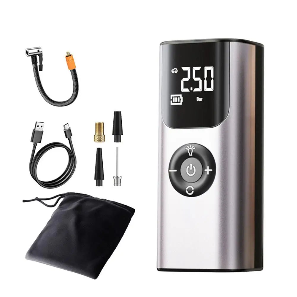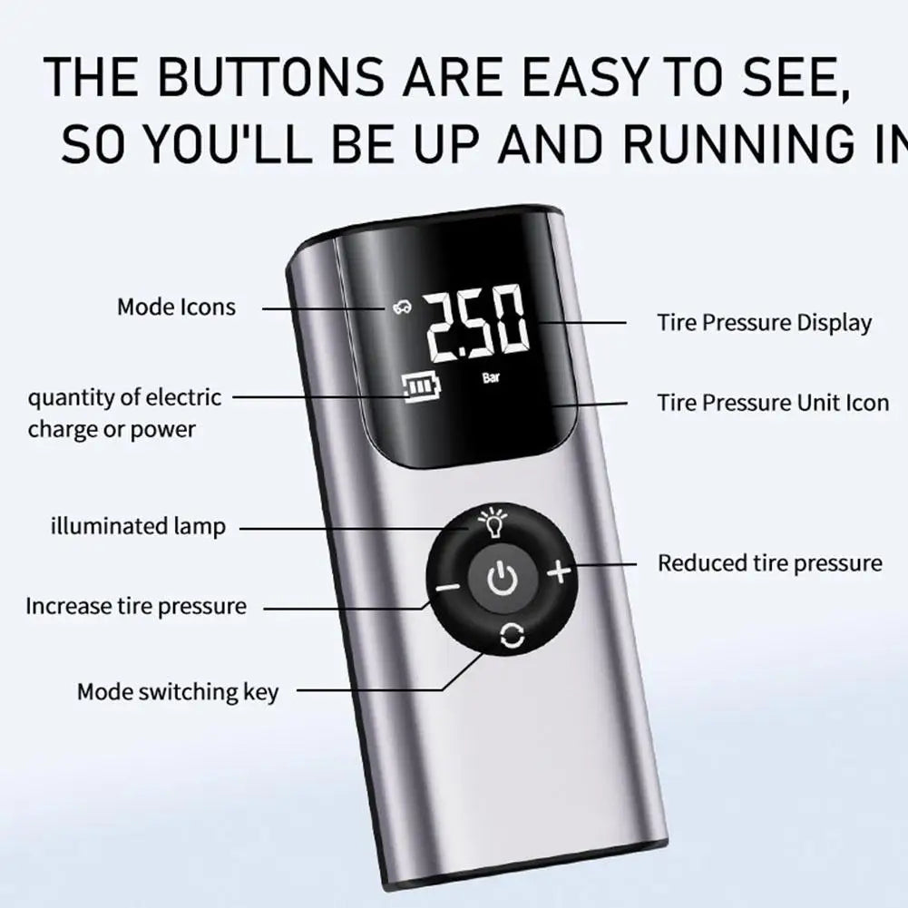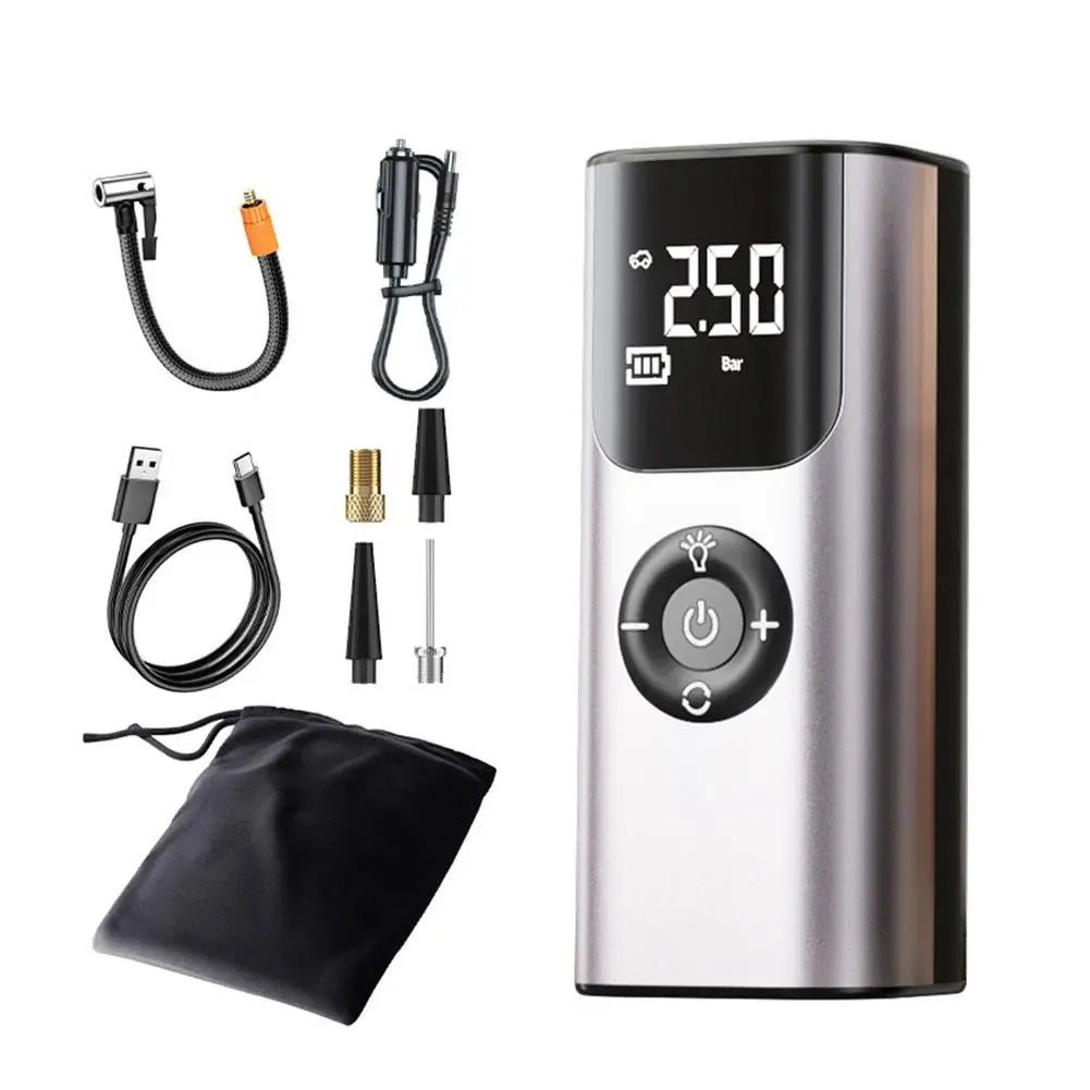 Cordless Air Compressor for Car Tires - Portable Wireless Air Pump with Digital Gauge, LED Light for SUV Truck Motorcycle